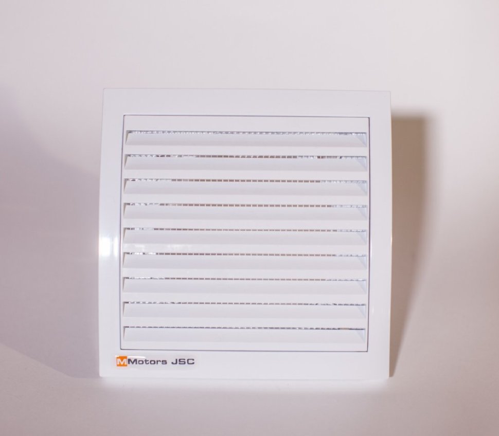 - Дизайнерская вентиляционная решетка Mmotors пластик, D 100, квадратная. Цвет белый.