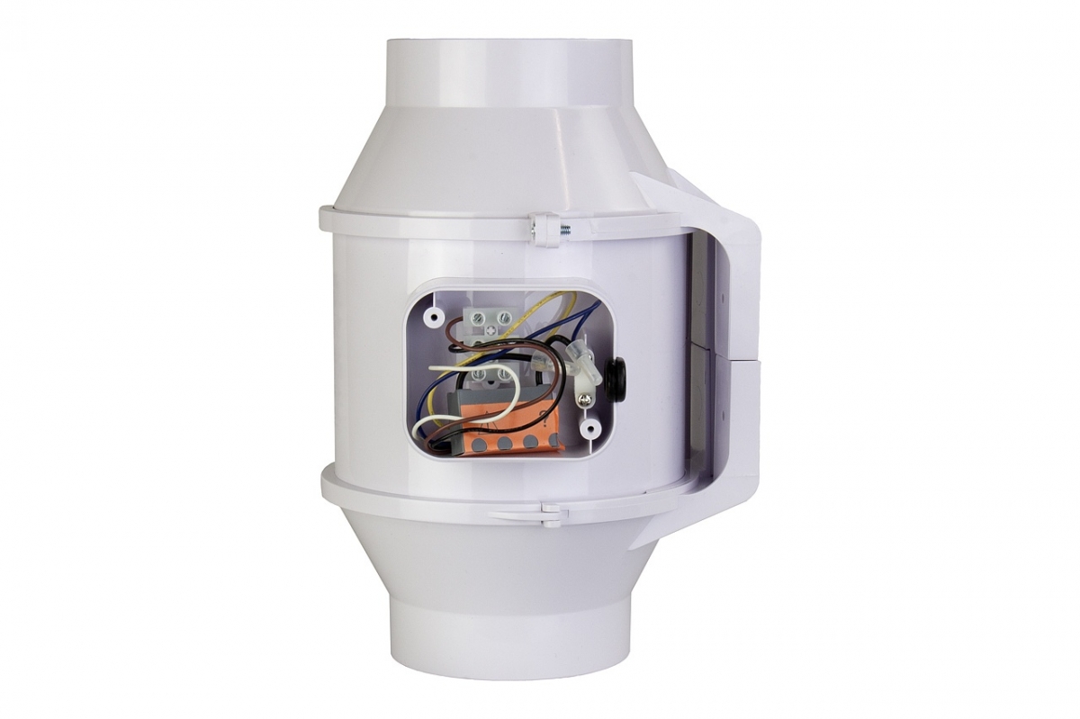 Вентилятор состоит из двух частей: монтажного кронштейна и закрепленного на нем корпуса вентилятора. Все корпусные элементы: корпус, патрубки, кронштейны и хомуты изготовлены из АБС пластика, имеют повышенный класс брызгозащиты и обладают диэлектрическими свойствами. Оборудован внешней клеммной коробкой с возможностью переключения скоростей.