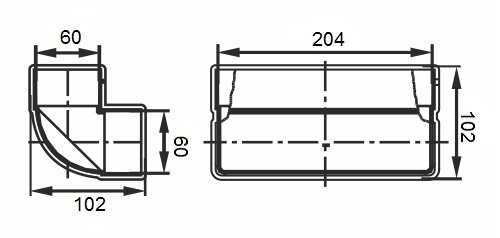 Колено плоское вертикальное 90 градусов 204х60. Монтируются с плоскими воздуховодами.