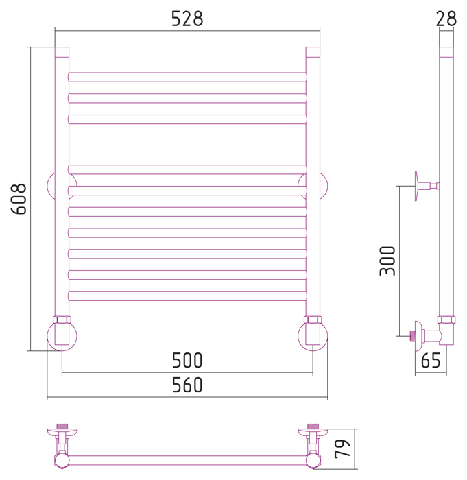 Благодаря размерам этого устройства – водяного полотенцесушителя Стилье, модельного ряда Рапсодия, этот показатель составляет – 600 мм в высоту, и 500 мм в ширину, установка и эксплуатация данного продукта, стала гораздо удобнее.