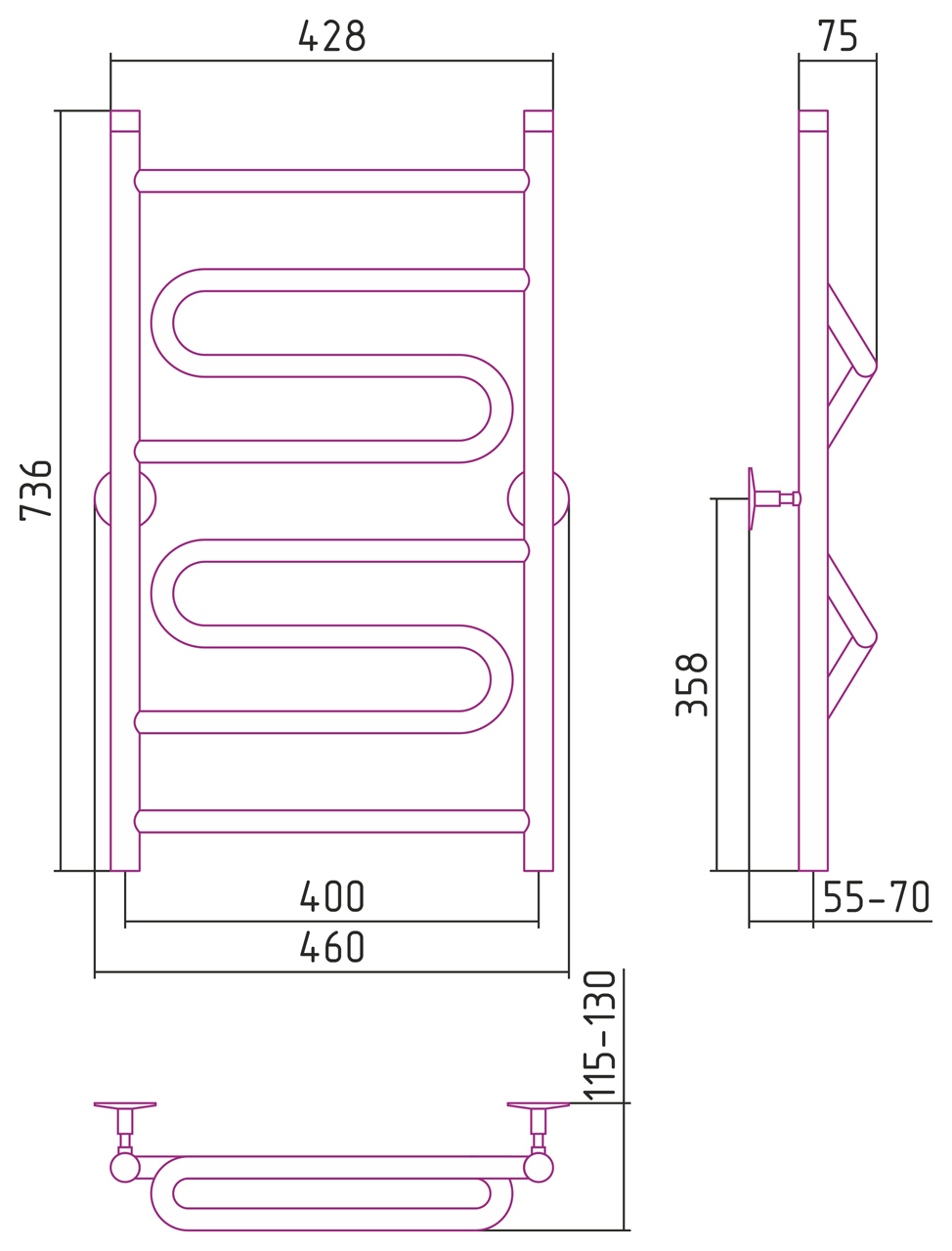Полотенцесушитель водяной Стилье Универсал-51 800x400