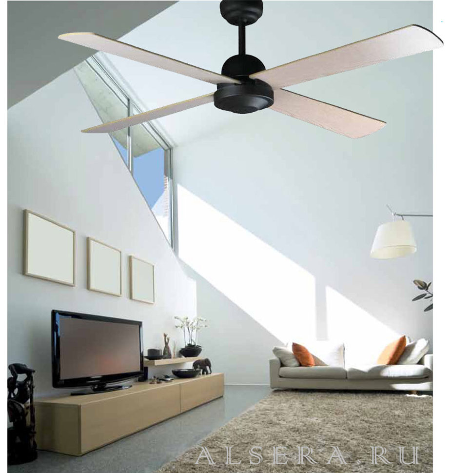 • лопасти двусторонние, т.е. разного цвета с каждой из сторон, это позволяет выбрать наиболее подходящий для интерьера цвет, при этом обратная часть лопасти будет повернута вверх к потолку и ее цвета видно не будет;