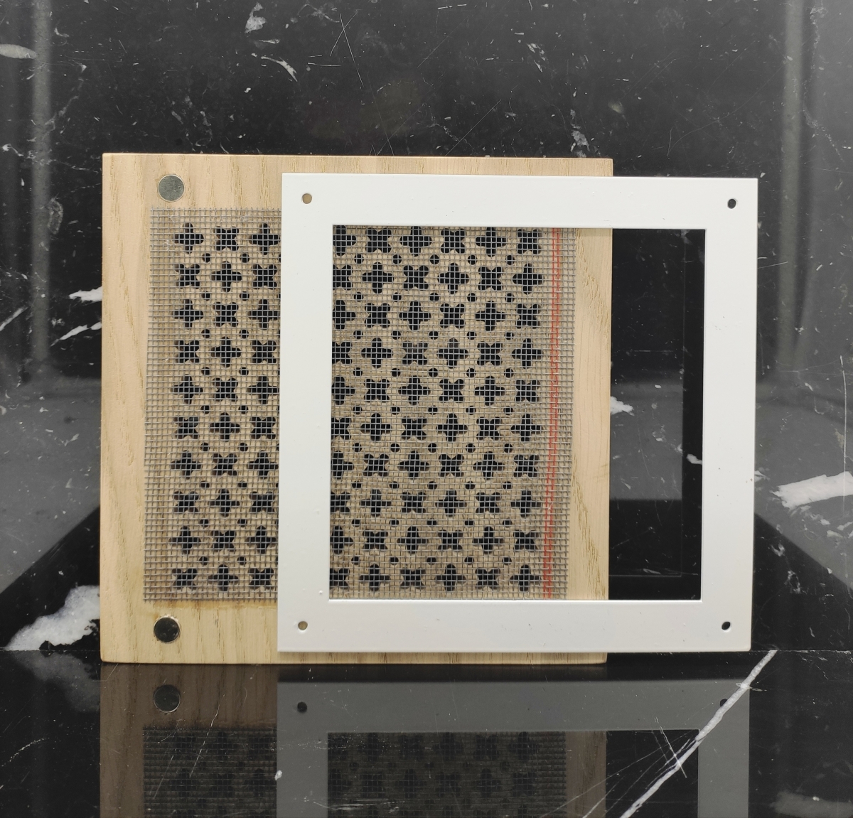 Решетка состоит из двух частей: декоративная панель со встроенными в задней части магнитами и монтажная рамка.